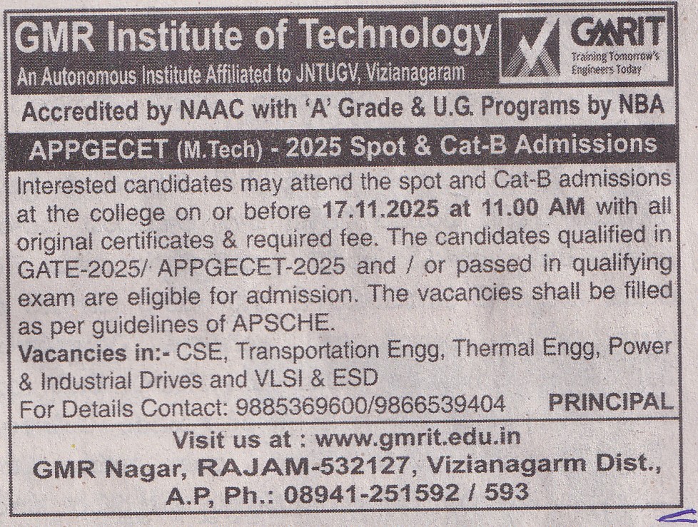 Located in Rajam, Vizainagaram district of Andhra Pradesh, GMRIT provides its learning community